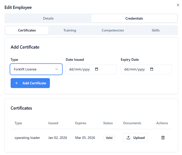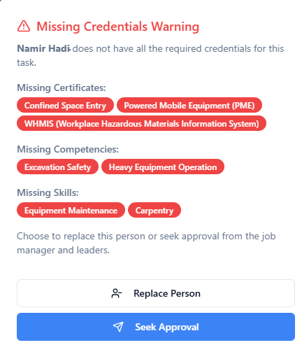 Automatically verify employee qualifications, certifications, and competencies before task assignment, reducing risk and ensuring regulatory compliance for your projects.